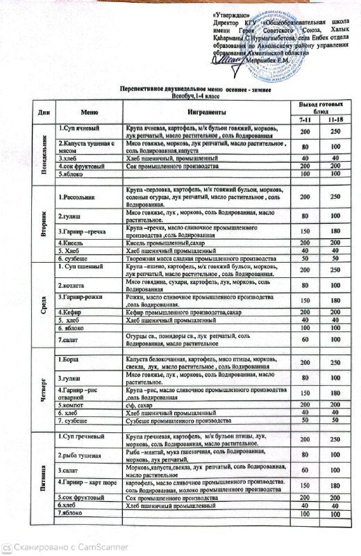 Перспективаның екі апталық мәзірі