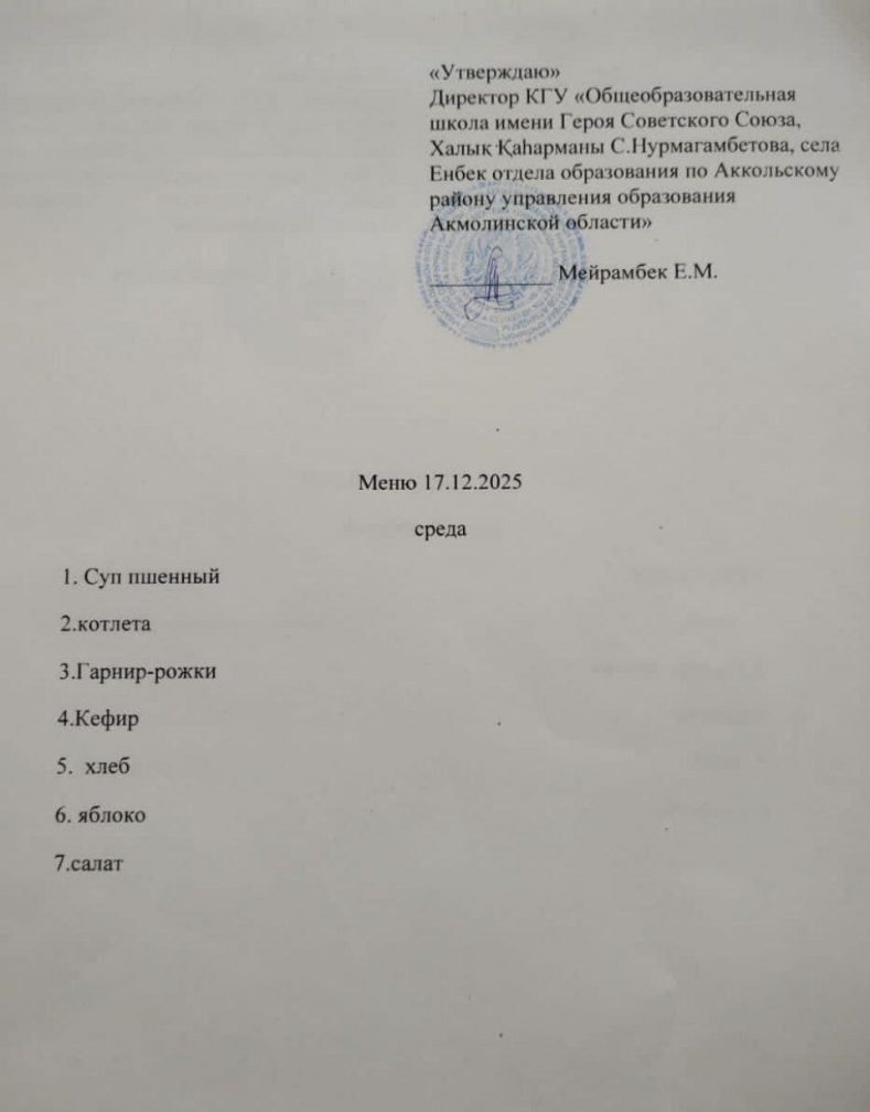 Коммунальное государственное учреждение «Школа-детский сад имени Героя Советского Союза Халық Қаһарманы С.Нурмагамбетова села Енбек отдела образования по Аккольскому району управления образования Акмолинской области"