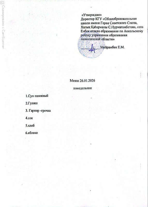 Тамақтану 26.01.26ж
