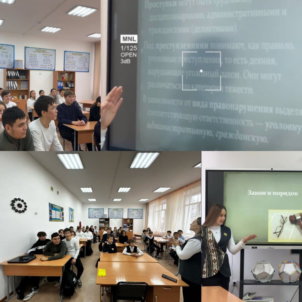 26 ноября в КГУ «Общеобразовательная школа имени Героя Советского Союза, Халық Қаһарманы С.Нурмагамбетова, села Енбек» было проведено профилактическое мероприятие «Закон и порядок», организованное и проведённое заместителем директора по воспитательной работе Световой О.В. Главная цель мероприятия — формирование у учащихся правовой культуры, уважительного отношения к закону и понимания личной ответственности за свои поступки. В ходе встречи учащимся были разъяснены основные нормы правового поведения, правила безопасного и ответственного поведения в школе, дома и в общественных местах. Учащиеся были ознакомлены с видами правонарушений, наиболее характерных для подростковой среды. Особое внимание было уделено вопросам профилактики агрессии, буллинга, кибербуллинга, а также безопасного поведения в сети Интернет.
